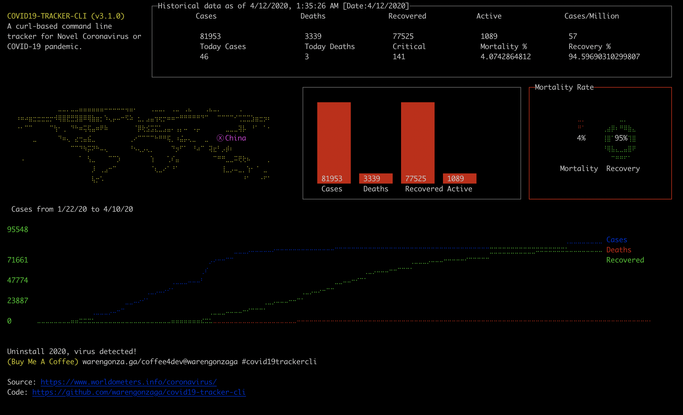 This pull request is being automatically deployed with ZEIT Now (learn more). 🔍 Inspect: https://zeit.co/warengonzaga/covid19-tracker-cli/fdb8z5iky |
