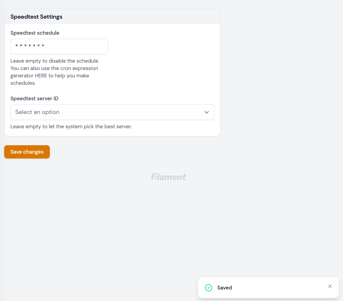/admin/general - Enter an invalid cron expression into the "Speedtest schedule" text input such as