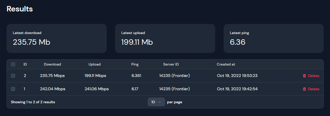 Yes please, can you push a beta release for this by chance? also even though it doesn't pertain to this issue, does TZ data just not work? the set up. edit: So I made the changes on my side, on the same thing you did and spun up a test, and the results are still slightly off.. this is what I got in the speedtest tracker page: |
