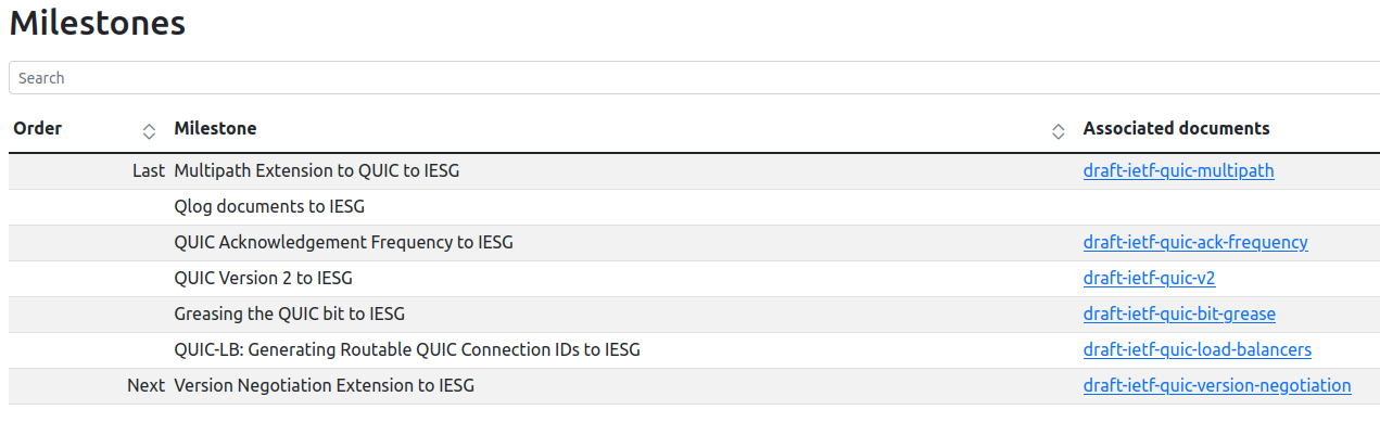 I created a new milestone, "Qlog documents to IESG" in the QUIC WG