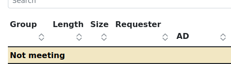 On the meeting requests page, the first few column headings are formatted poorly. The columns are too narrow, taking up two lines with the sort button meant to be to beside the heading text on the next line. This occurs even with a 2500px wide browser until I reduce the font size to something unreadable.
