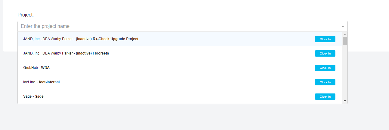 Whenever a user enters in the Time Clock>Projects, they have to type in a project for the feature to show a message.