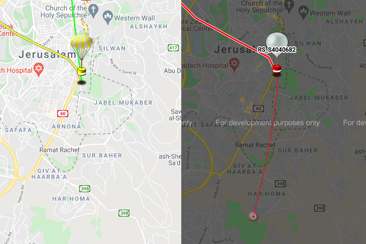 I'm attaching a screenshot showing the same ~6 hours old sonde in both HabHub (on the right) and in SondeHub (no predicted path) . At times, that predicted path is quite useful.